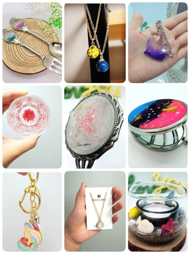 요즘 레진공예 DIY가 정말 핫한 취미인 것 같아요. 레진만으로 나만의 디자인으로 다양한 액세서리와 소품을 만들 수 있다는 건 당연한 일이겠죠? 레진공예 DIY를 취미로 하시는 분들이 대부분인데 요즘은 부업이나 창업으로 하시는 분들이 많아지는 것 같아요. 연구해본 결과 원데이클래스를 진행하거나 액세서리를 제작 판매하는 등 다양하게 활용이 가능하다고 들었습니다. 저도 DIY 레진 공예를 너무 좋아했고, 돈 버는 방법도 있다고 해서 바로 시작하게 됐어요.