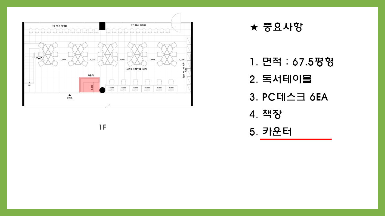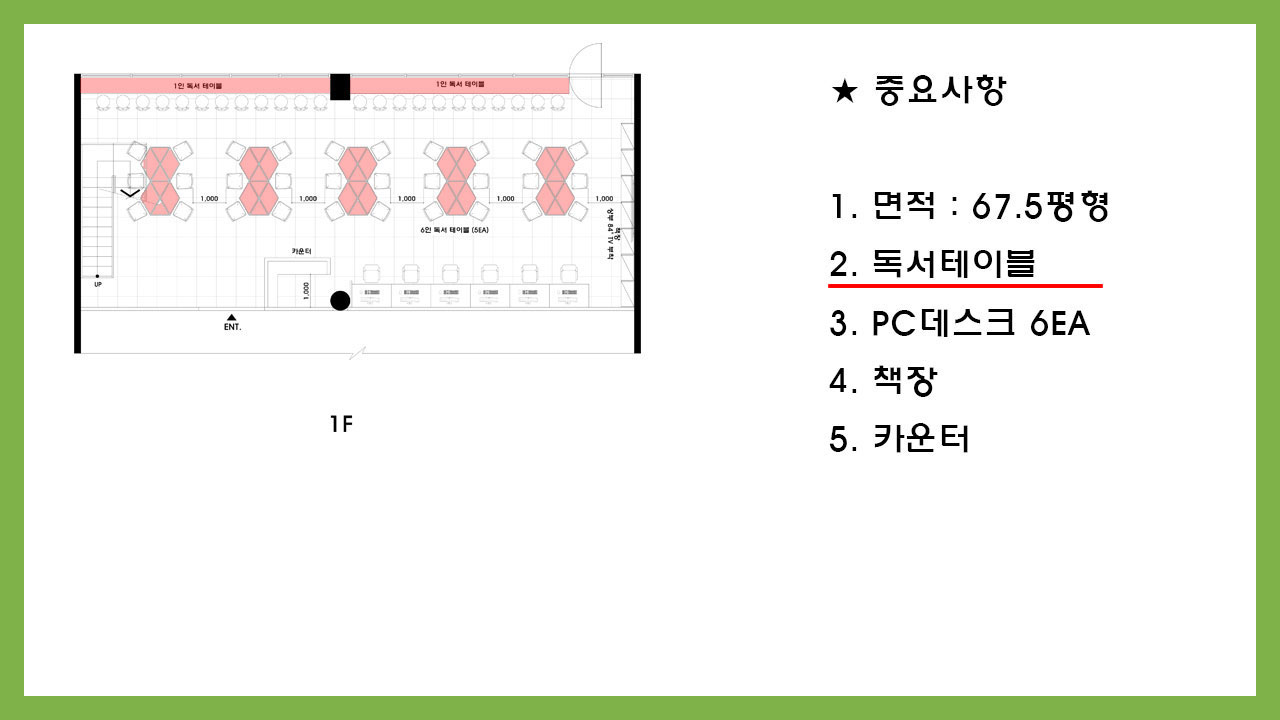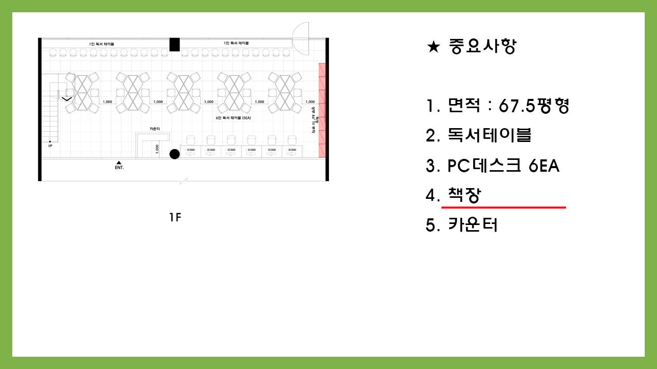 #독서실을 어떻게 꾸려야 하는지에 대한 당신의 아이디어에 해당하는 도면을 만들어 드립니다.