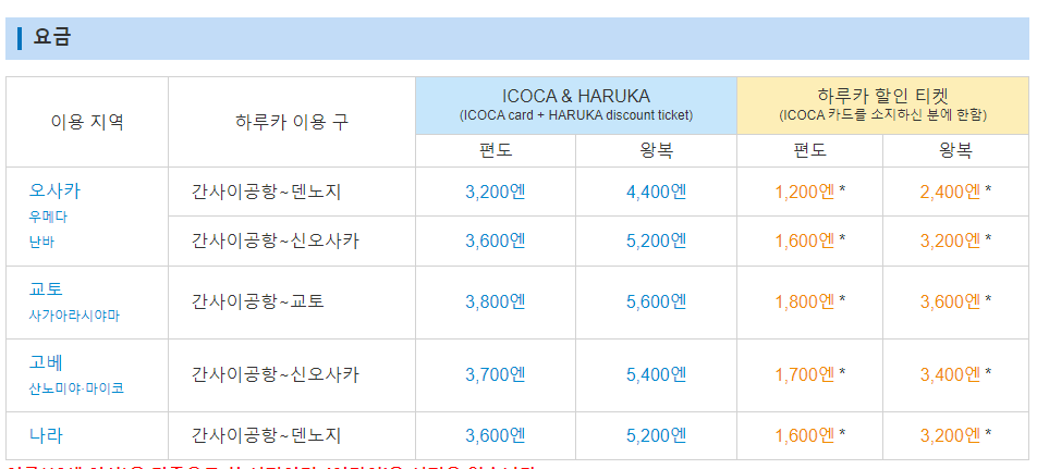 그냥 사면 편도 가격이 3200엔 정도로 매우 비쌉니다. 따라서 ICOCA 할인을 받으십시오.