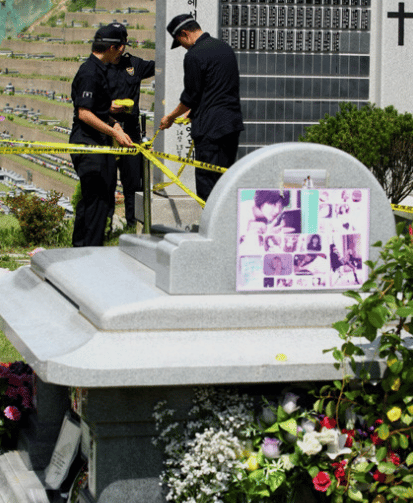 감시 영상으로 확보한 범인은 무덤 옆면의 대리석을 망치로 부수고 유골함을 훔친 뒤 젖은 걸레로 지문과 증거물을 닦은 뒤 조용히 사라졌다.