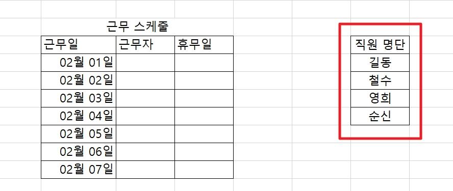 매번 근무 일정에 작업자 필드에 작업자를 등록하는 것도 작업입니다.